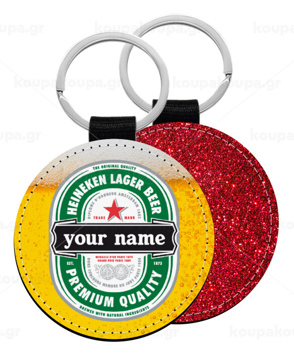 Heineken με όνομα, Μπρελόκ Δερματίνη, στρογγυλό ΚΟΚΚΙΝΟ (5cm)