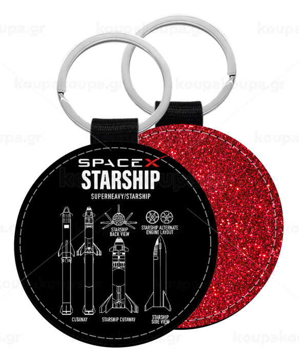 Space X, Μπρελόκ Δερματίνη, στρογγυλό ΚΟΚΚΙΝΟ (5cm)