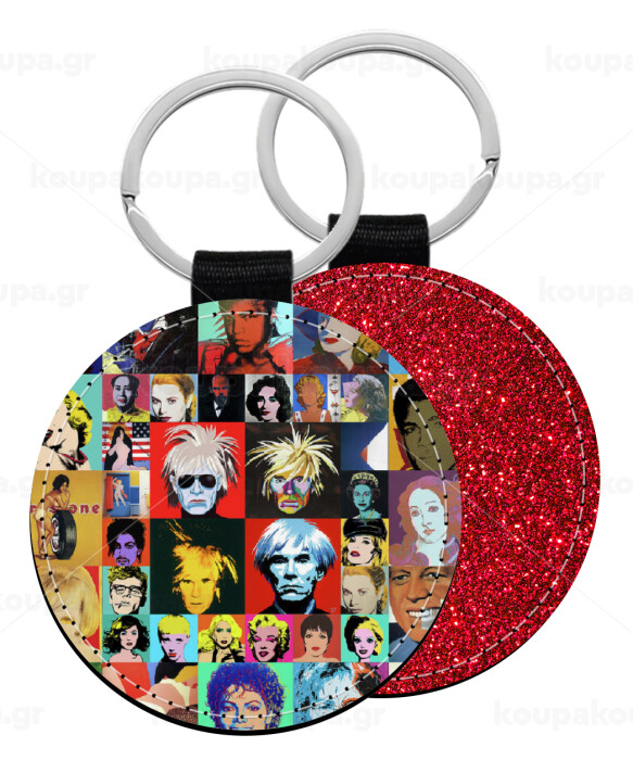 Warhol pop art, Μπρελόκ Δερματίνη, στρογγυλό ΚΟΚΚΙΝΟ (5cm)