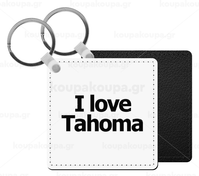 I love Tahoma, Μπρελόκ Δερματίνη, τετράγωνο ΜΑΥΡΟ (5x5cm)