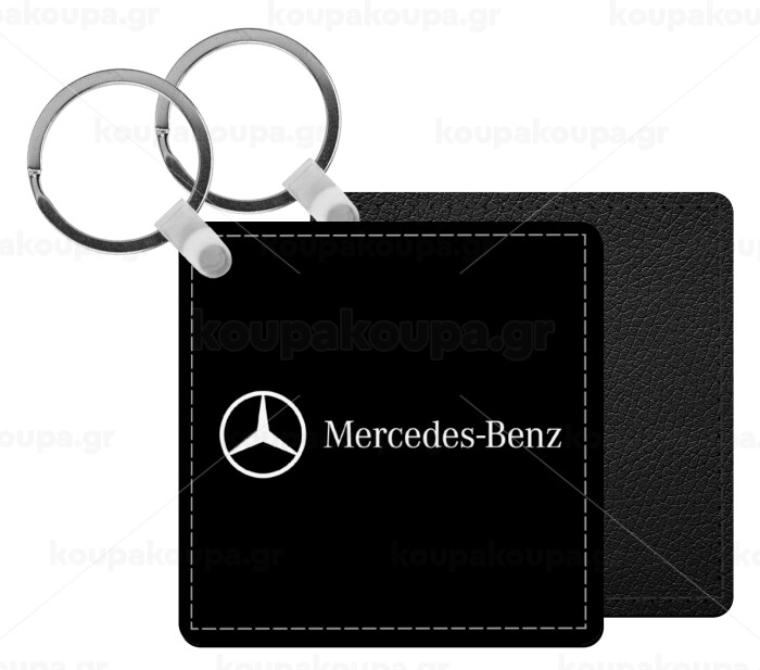 Mercedes small logo, Μπρελόκ Δερματίνη, τετράγωνο ΜΑΥΡΟ (5x5cm)
