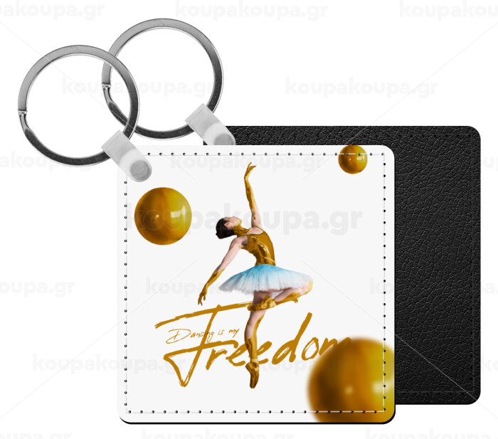 Gold Dancer, Μπρελόκ Δερματίνη, τετράγωνο ΜΑΥΡΟ (5x5cm)