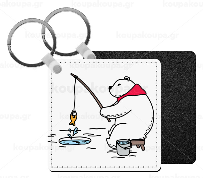 Αρκούδα ψαρεύει, Μπρελόκ Δερματίνη, τετράγωνο ΜΑΥΡΟ (5x5cm)