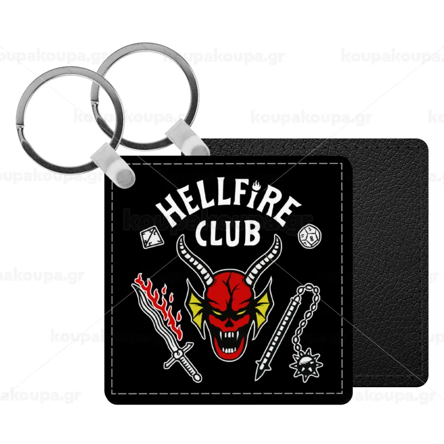 Hellfire CLub, Stranger Things, Μπρελόκ Δερματίνη, τετράγωνο ΜΑΥΡΟ (5x5cm)