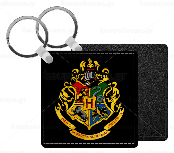 Hogwart's, Μπρελόκ Δερματίνη, τετράγωνο ΜΑΥΡΟ (5x5cm)