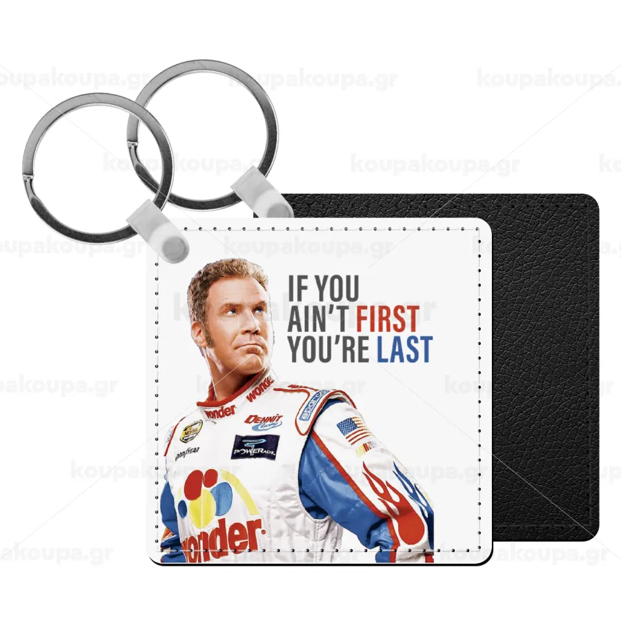 If You Ain't First You're Last Ricky Bobby, Talladega Nights, Μπρελόκ Δερματίνη, τετράγωνο ΜΑΥΡΟ (5x5cm)