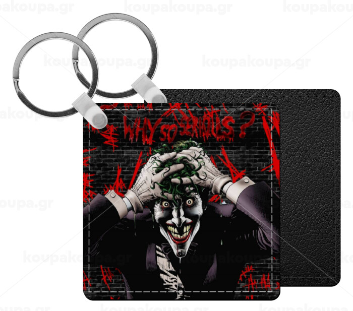 Joker Why so serious?, Μπρελόκ Δερματίνη, τετράγωνο ΜΑΥΡΟ (5x5cm)