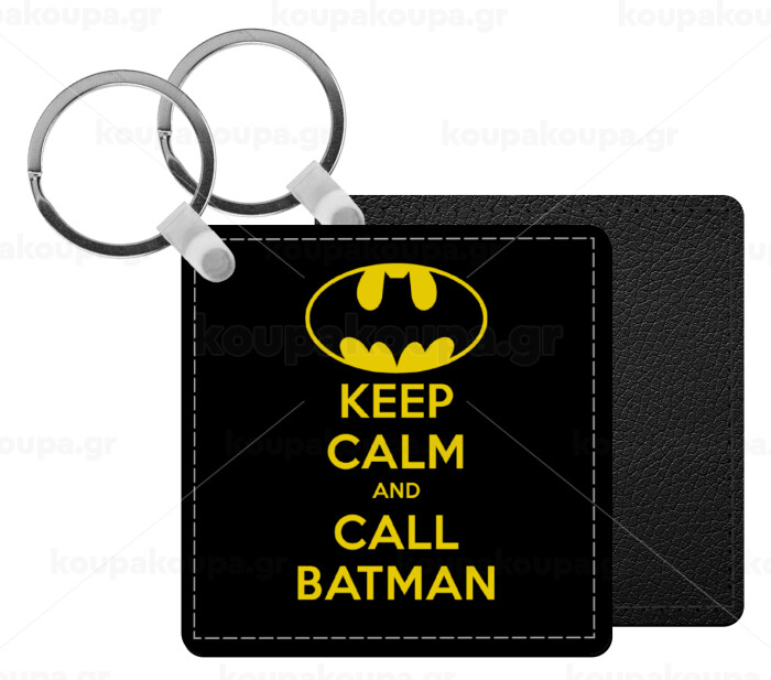 KEEP CALM & Call BATMAN, Μπρελόκ Δερματίνη, τετράγωνο ΜΑΥΡΟ (5x5cm)