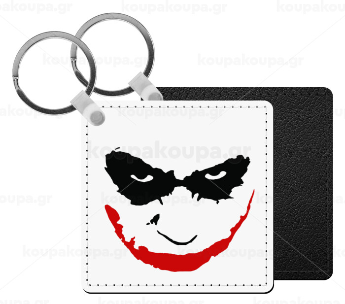 The joker smile, Μπρελόκ Δερματίνη, τετράγωνο ΜΑΥΡΟ (5x5cm)