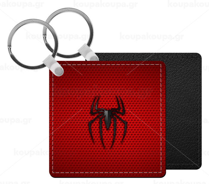 Άνθρωπος αράχνη, Μπρελόκ Δερματίνη, τετράγωνο ΜΑΥΡΟ (5x5cm)