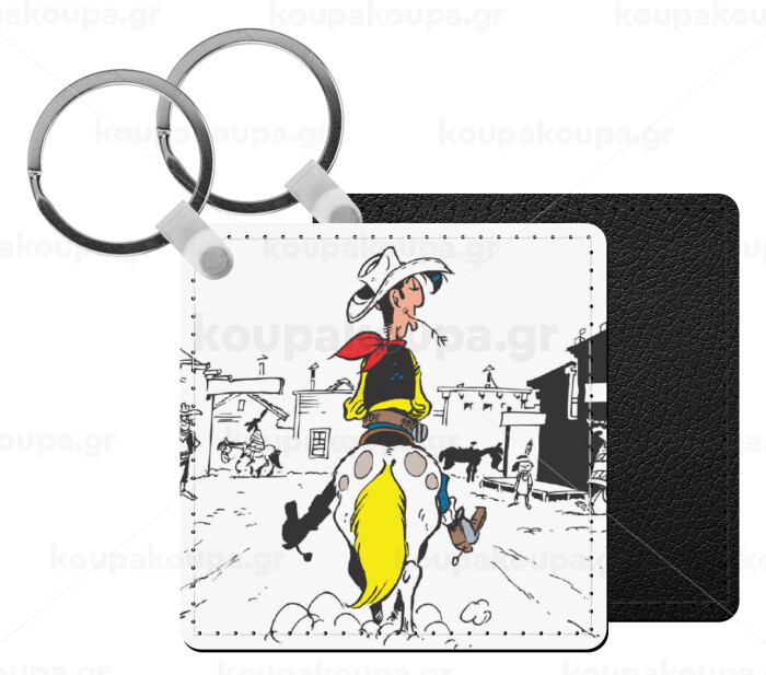 Λούκυ Λουκ comic, Μπρελόκ Δερματίνη, τετράγωνο ΜΑΥΡΟ (5x5cm)