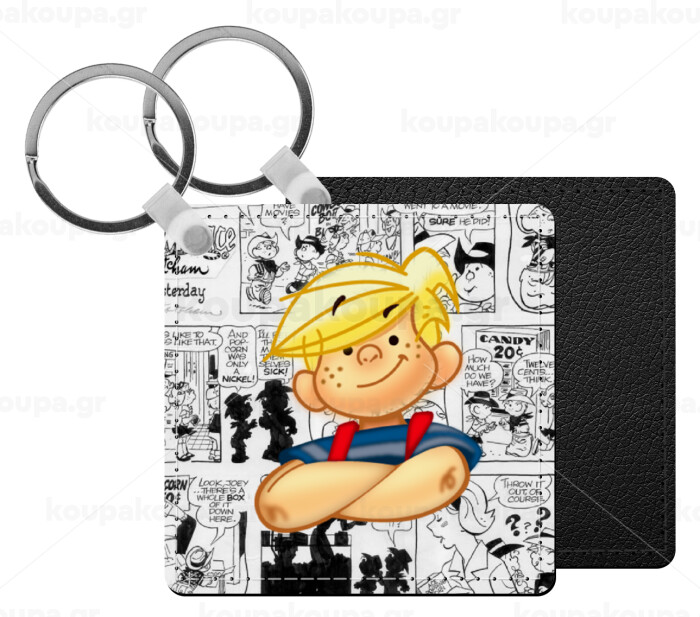 Ντένις ο τρομερός, Μπρελόκ Δερματίνη, τετράγωνο ΜΑΥΡΟ (5x5cm)