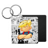 Huntrix K-pop series, Μπρελόκ Δερματίνη, τετράγωνο ΜΑΥΡΟ (5x5cm)