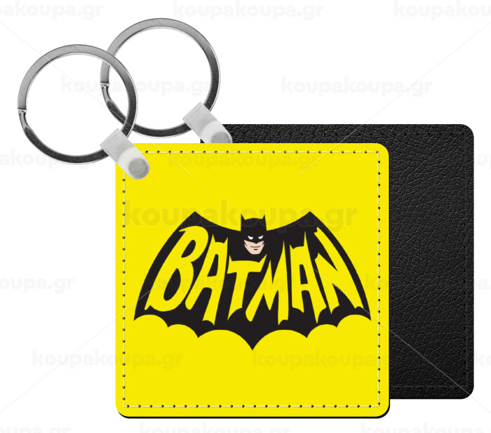Batman classic logo, Μπρελόκ Δερματίνη, τετράγωνο ΜΑΥΡΟ (5x5cm)