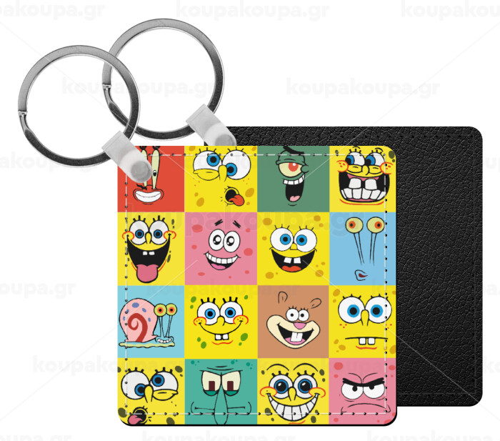 Ο μπομπ και οι φίλοι του, Μπρελόκ Δερματίνη, τετράγωνο ΜΑΥΡΟ (5x5cm)