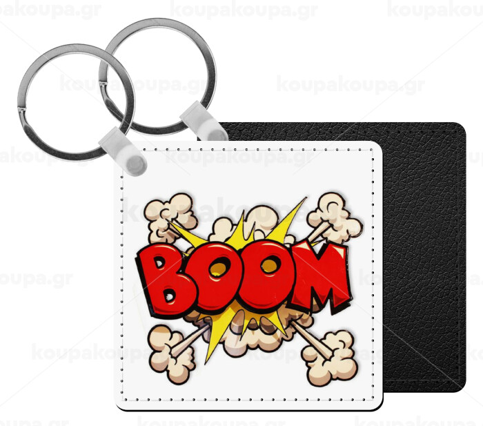 BOOM!!!, Μπρελόκ Δερματίνη, τετράγωνο ΜΑΥΡΟ (5x5cm)
