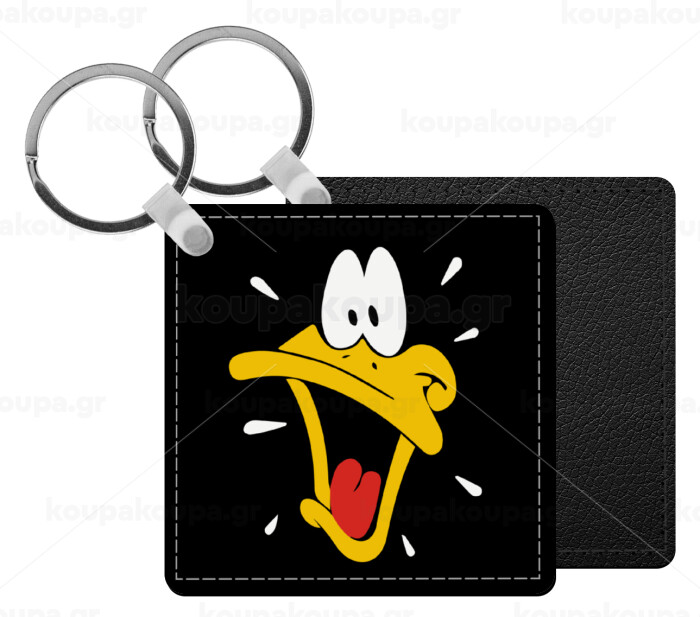 Daffy Duck, Μπρελόκ Δερματίνη, τετράγωνο ΜΑΥΡΟ (5x5cm)