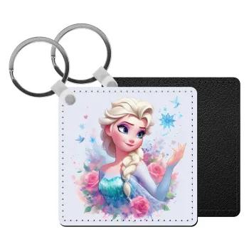 Elsa Princess, Μπρελόκ Δερματίνη, τετράγωνο ΜΑΥΡΟ (5x5cm)