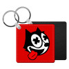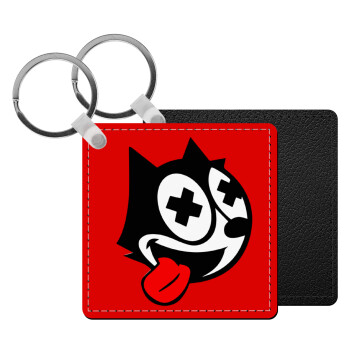 helix the cat, Μπρελόκ Δερματίνη, τετράγωνο ΜΑΥΡΟ (5x5cm)