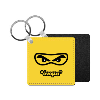 Ninja Eyes με όνομα, Μπρελόκ Δερματίνη, τετράγωνο ΜΑΥΡΟ (5x5cm)