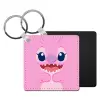 Lilo & Stitch Angel pink, Μπρελόκ Δερματίνη, τετράγωνο ΜΑΥΡΟ (5x5cm)