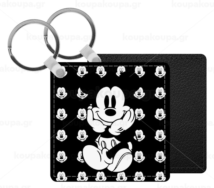 Mickey, Μπρελόκ Δερματίνη, τετράγωνο ΜΑΥΡΟ (5x5cm)