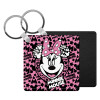 Minnie mouse, Μπρελόκ Δερματίνη, τετράγωνο ΜΑΥΡΟ (5x5cm)