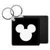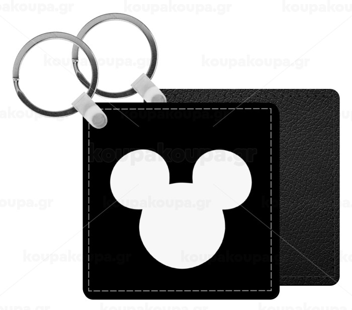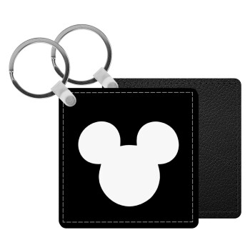Mickey Mouse, Μπρελόκ Δερματίνη, τετράγωνο ΜΑΥΡΟ (5x5cm)