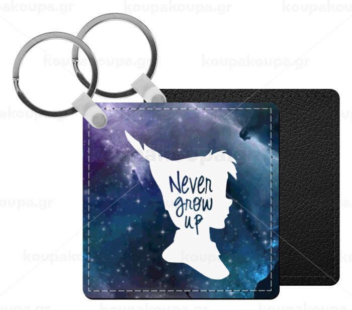 Never Grow UP, Μπρελόκ Δερματίνη, τετράγωνο ΜΑΥΡΟ (5x5cm)