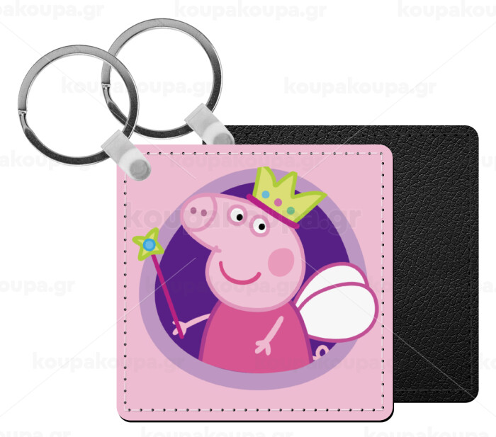 Peppa pig Queen, Μπρελόκ Δερματίνη, τετράγωνο ΜΑΥΡΟ (5x5cm)