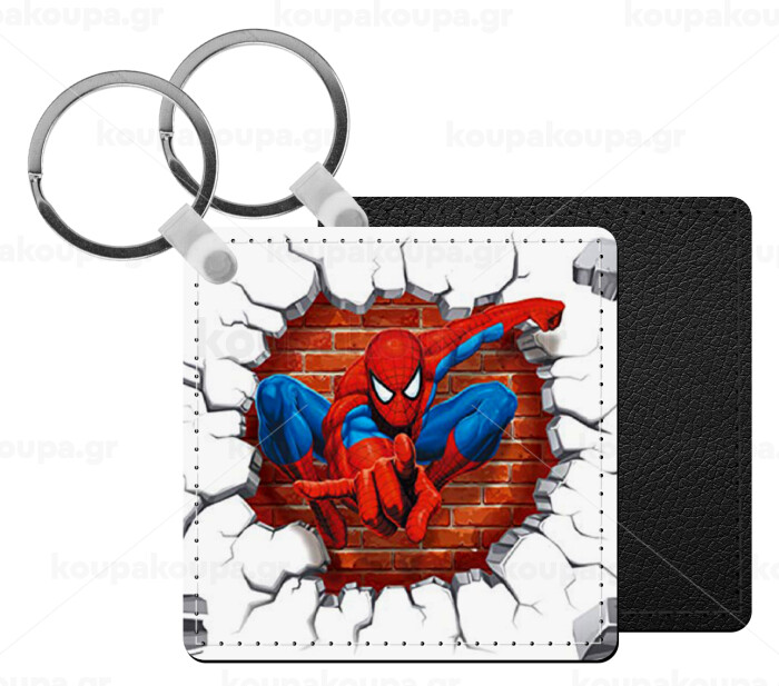 Spiderman wall, Μπρελόκ Δερματίνη, τετράγωνο ΜΑΥΡΟ (5x5cm)