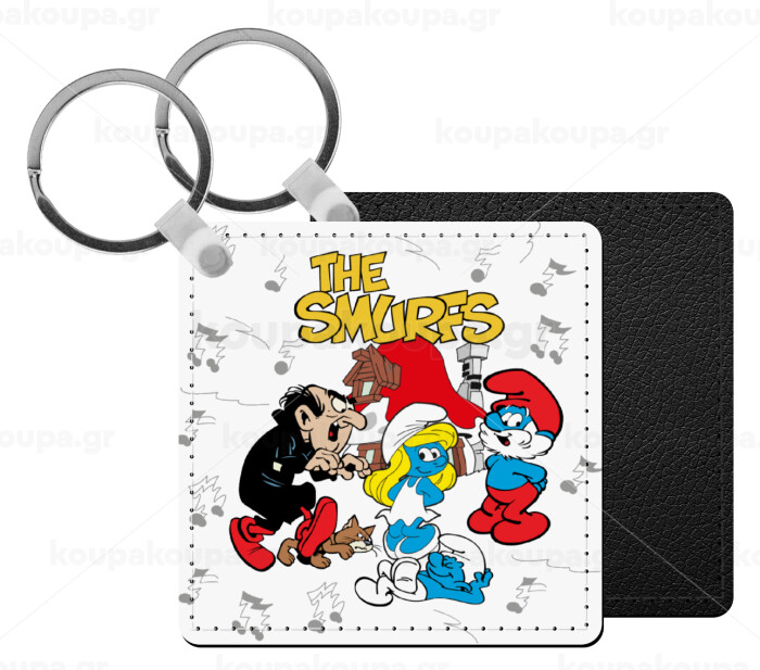 Τα στρουμφάκια, Μπρελόκ Δερματίνη, τετράγωνο ΜΑΥΡΟ (5x5cm)