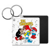 Mickey Mouse, Μπρελόκ Δερματίνη, τετράγωνο ΜΑΥΡΟ (5x5cm)