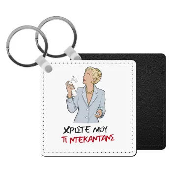 Πως τους πετσόκοψες έτσι..., Μπρελόκ Δερματίνη, τετράγωνο ΜΑΥΡΟ (5x5cm)