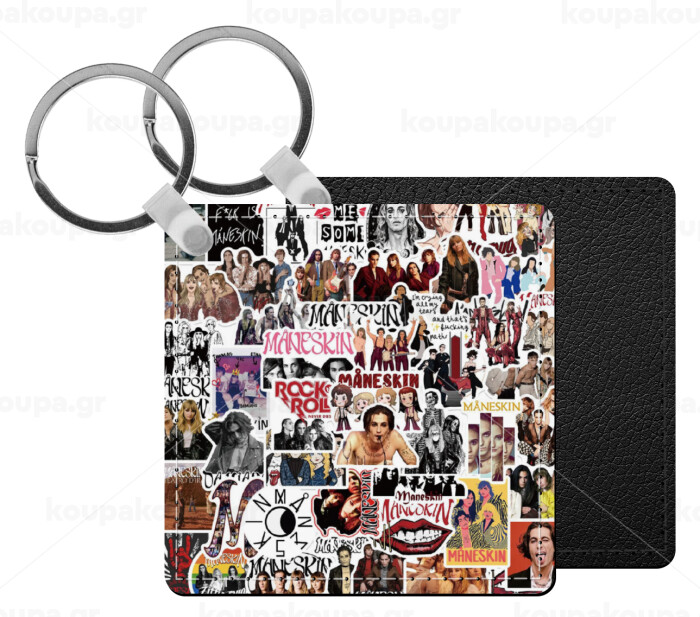 Maneskin stickers, Μπρελόκ Δερματίνη, τετράγωνο ΜΑΥΡΟ (5x5cm)