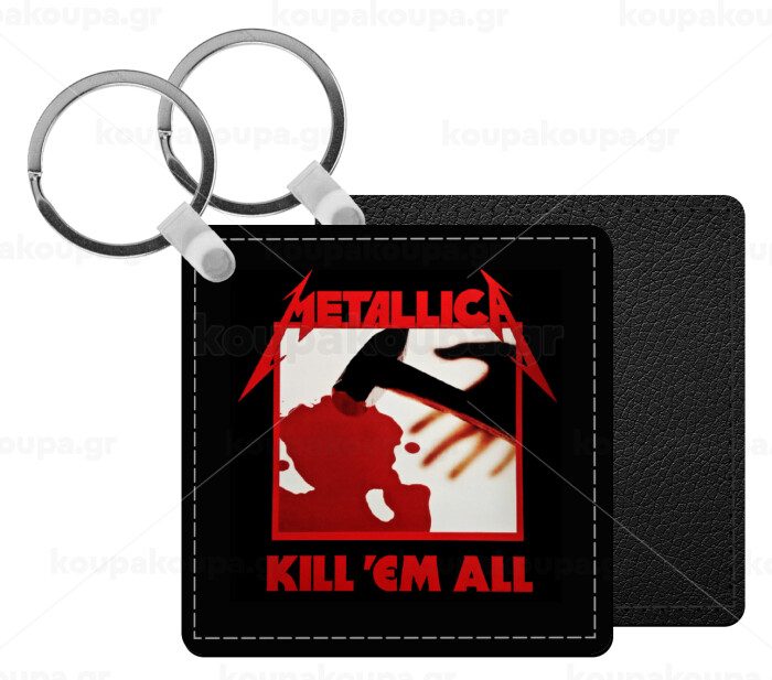 Metallica Kill' em all, Μπρελόκ Δερματίνη, τετράγωνο ΜΑΥΡΟ (5x5cm)