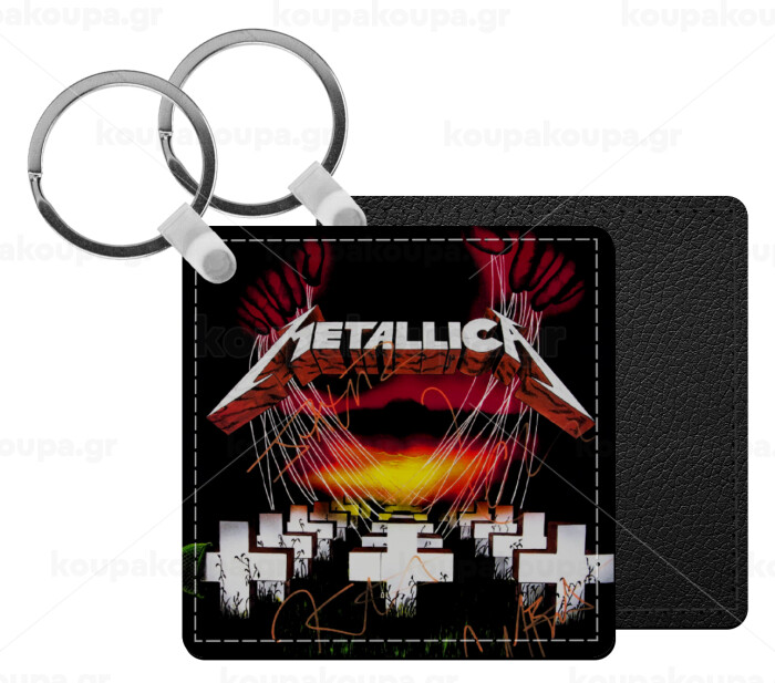 Metallica master of puppets, Μπρελόκ Δερματίνη, τετράγωνο ΜΑΥΡΟ (5x5cm)