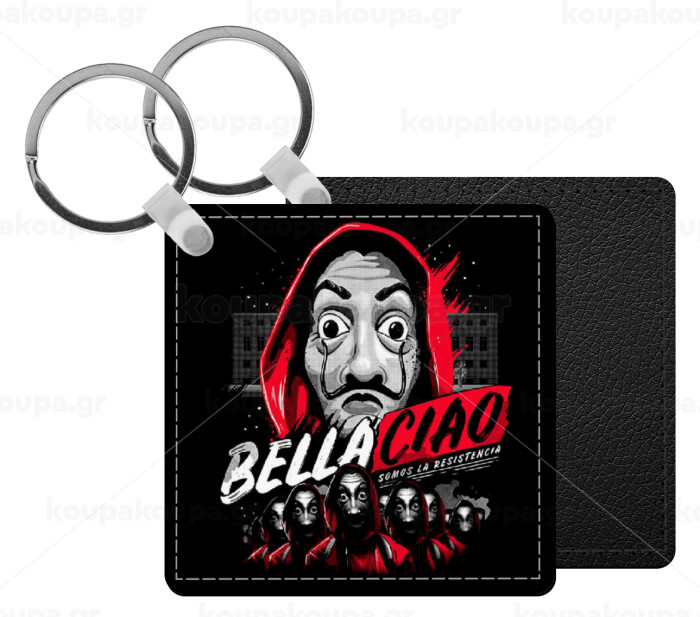Bella Ciao Somos La resistencia, Μπρελόκ Δερματίνη, τετράγωνο ΜΑΥΡΟ (5x5cm)