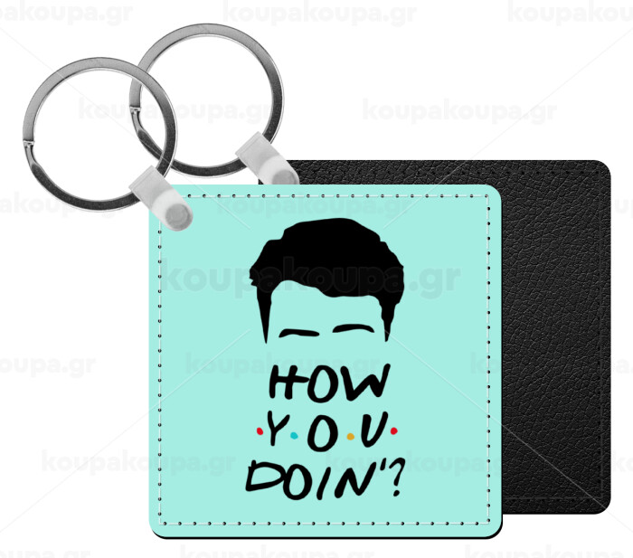 Friends how you doin?, Μπρελόκ Δερματίνη, τετράγωνο ΜΑΥΡΟ (5x5cm)