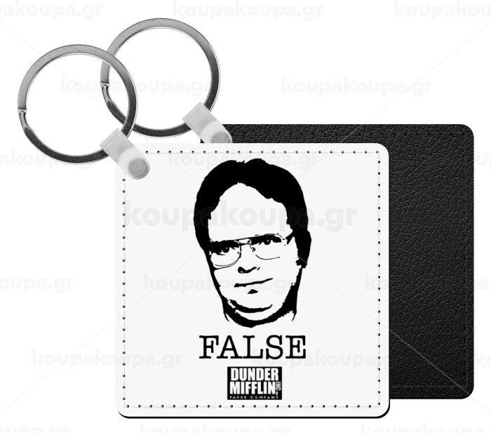 The office Dwight, Μπρελόκ Δερματίνη, τετράγωνο ΜΑΥΡΟ (5x5cm)