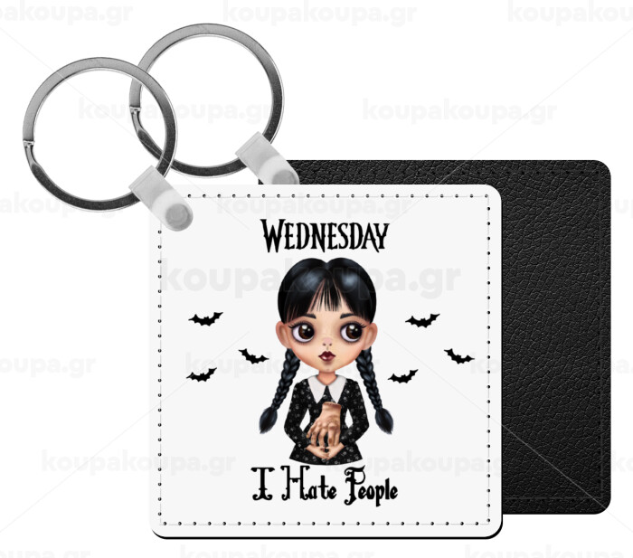 Wednesday Adams, i hate people, Μπρελόκ Δερματίνη, τετράγωνο ΜΑΥΡΟ (5x5cm)