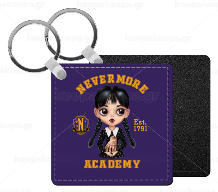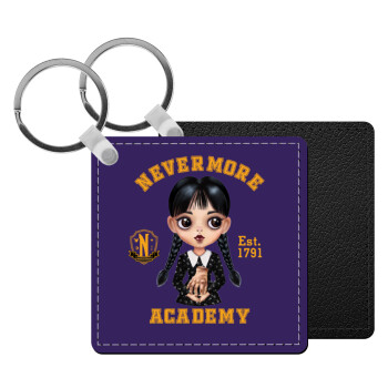 Wednesday Adams, nevermore, Μπρελόκ Δερματίνη, τετράγωνο ΜΑΥΡΟ (5x5cm)