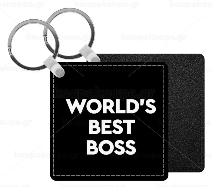 World's best boss, Μπρελόκ Δερματίνη, τετράγωνο ΜΑΥΡΟ (5x5cm)