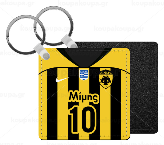 ΑΕΚ εμφάνιση, Μπρελόκ Δερματίνη, τετράγωνο ΜΑΥΡΟ (5x5cm)