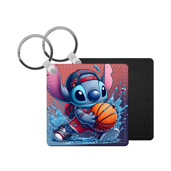 Stitch Basketball, Μπρελόκ Δερματίνη, τετράγωνο ΜΑΥΡΟ (5x5cm)