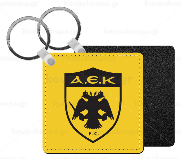ΑΕΚ, Μπρελόκ Δερματίνη, τετράγωνο ΜΑΥΡΟ (5x5cm)