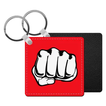 Γροθιά (punch), Μπρελόκ Δερματίνη, τετράγωνο ΜΑΥΡΟ (5x5cm)