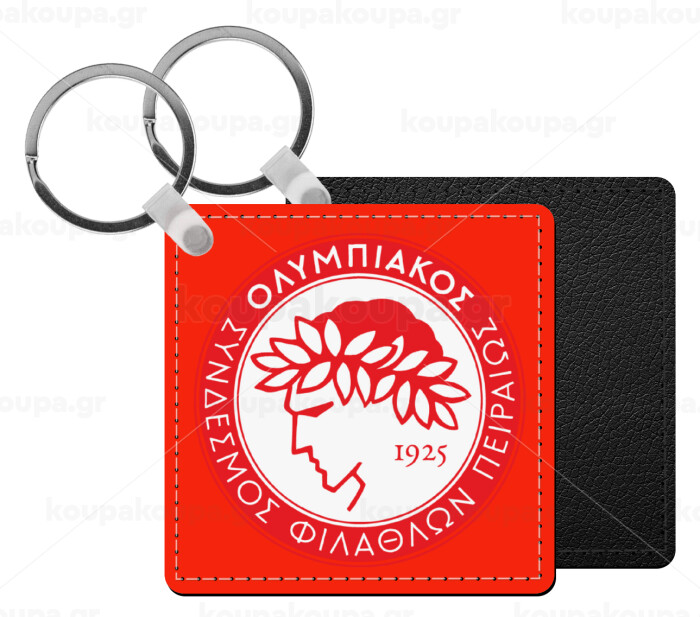 Ολυμπιακός, Μπρελόκ Δερματίνη, τετράγωνο ΜΑΥΡΟ (5x5cm)