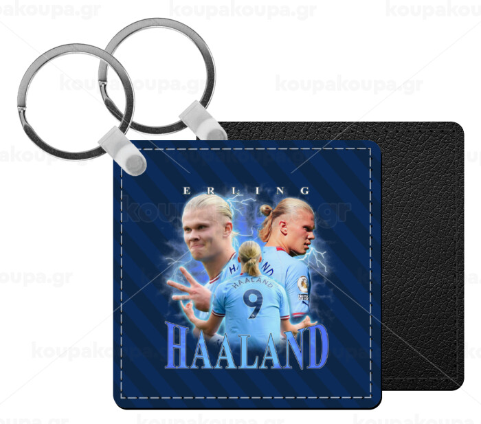 Erling Haaland, Μπρελόκ Δερματίνη, τετράγωνο ΜΑΥΡΟ (5x5cm)