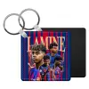 lamine yamal FCB, Μπρελόκ Δερματίνη, τετράγωνο ΜΑΥΡΟ (5x5cm)